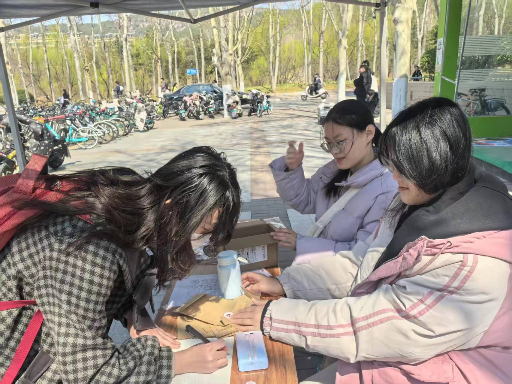 三月春风相送暖,雷锋精神百户传。为响应第62个“学雷锋纪念日”,弘扬新时代社会主义核心价值观,厚植青年大爱的胸怀和进取的锐气,3月19日,济南大学政法学院阳光先锋青年志愿者协会(以下简称“政法青协”)志愿者在主校区八食堂东侧广场举办了“‘星火传承,微光成炬’雷锋盲盒惊喜传递”线下活动,与同学们共同执青春之笔,谱写雷锋精神新篇章。
