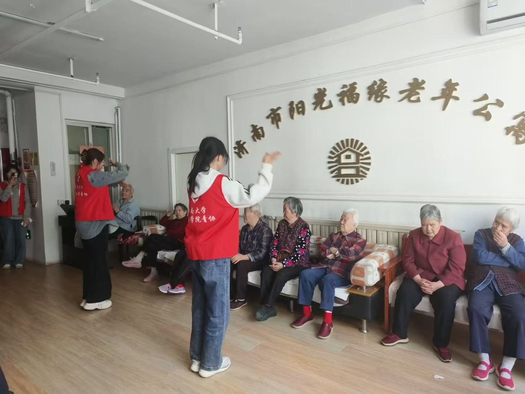 为深入践行社会主义核心价值观,弘扬中华民族尊老敬老的传统美德,缓解老人的情感孤独,保障他们的心理健康,政法学院阳光先锋青年志愿者协会(以下简称“政法青协”)的志愿者们于4月20日走进阳光福缘老年公寓,开展阳光助老志愿活动。