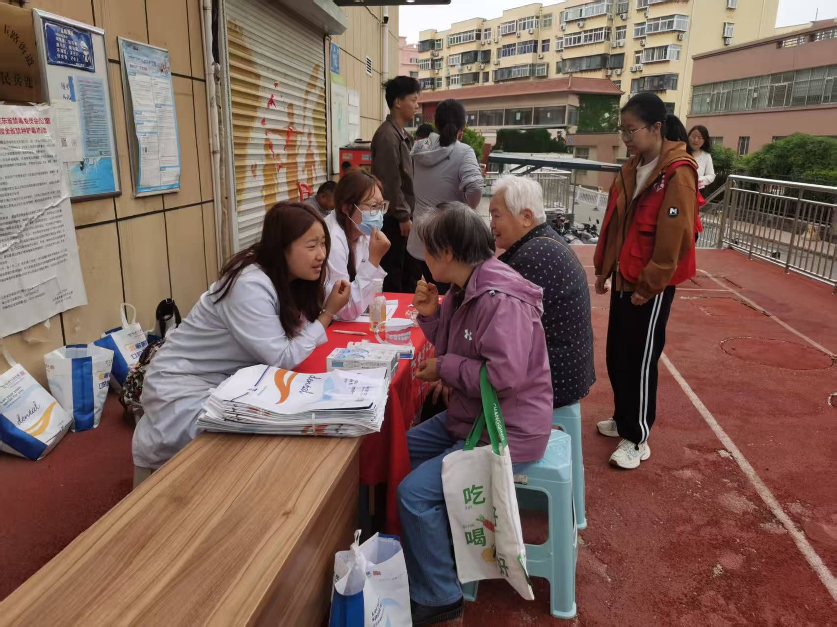 本次活动围绕四项服务:口腔检查、血压测量、磨刀和义剪。口腔医生为老人们仔细检查牙齿健康,讲解口腔保健知识,帮助他们养成良好的口腔护理习惯;医护人员则为老人测量血压,耐心解答健康问题,提供日常保健建议;磨刀师傅的手艺精湛,让老人们家中积攒已久的菜刀、剪刀重新变得锋利,解决了生活中的小难题;理发志愿者则为老人修剪发型,让他们精神焕发。实习生们全程提供贴心服务,引导居民排队、维护现场秩序、摄影记录。