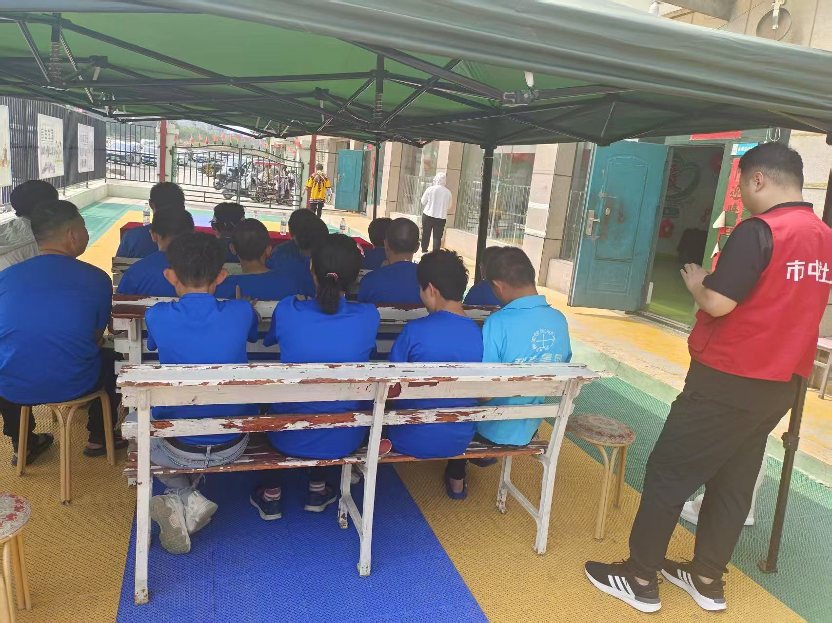 活动循序渐进展开。社工团队先组织小推车比赛,实习生带领志愿者鼓励并示范动作,协助成员完成赛道障碍挑战;随后,自闭症成员在推拿床上接受放松治疗,实习生根据个体情况协调志愿者进行轮流按摩;手工环节中,成员们在社工指导下制作彩色礼盒,志愿者辅助裁剪材料,实习生引导成员间交换礼物,现场氛围热烈;投篮比赛里,在实习生与志愿者引导下,成员们积极参与,在运动中提升反应能力。活动全程直播,实习生实时与观众在线互动。