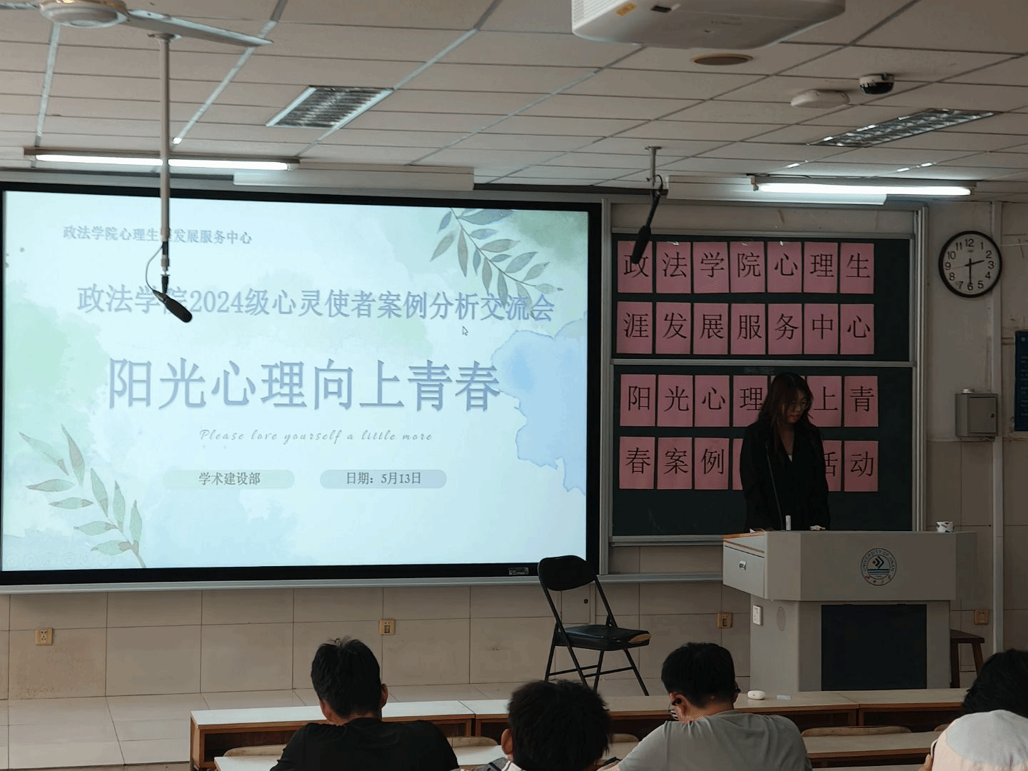 5月13日至5月25日,政法学院心理生涯发展服务中心举办“阳光心理,向上青春”案例分析活动,围绕大学生常见的压力管理、人际交往、情感困惑等心理议题展开深入分析。活动采用“案例剖析+思路演示+互动答疑”模式,引导2024级各班心灵使者独立开展主题班会。活动以线上征集的真实心理案例为切入点,为心灵使者提供可操作的问题解决范式,推动心理知识从被动输入到主动输出的转变。活动通过案例分析互动实现“双向赋能”,拉近了心与心的距离,提升了同学们的心理健康意识,为校园心理健康教育注入了新活力。