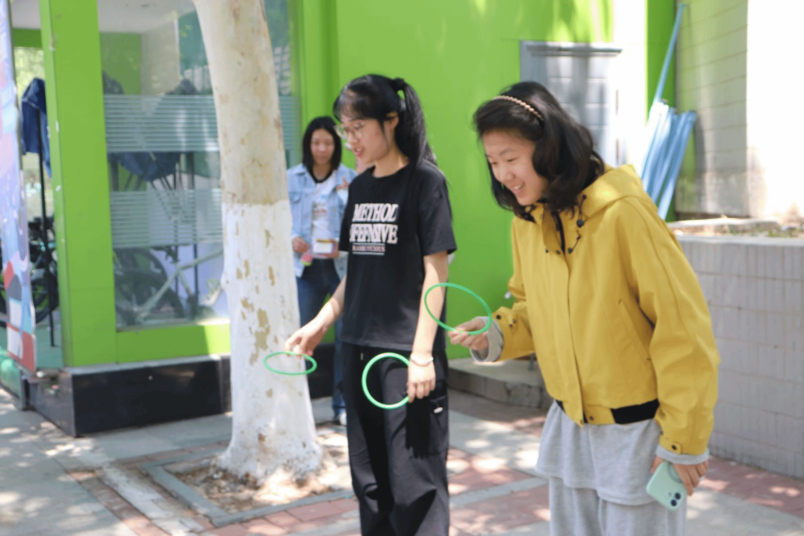 5月17日,政法学院心理生涯发展服务中心于八食堂广场举办“圈定欢乐,环环惊喜”活动。活动以对对碰游戏与套圈互动为核心,参与者通过辨识颜色对倒扣的彩色杯具进行逻辑配对,成功配对后获得套圈机会。同学们凭借套圈技巧,累计套中数量换取照片线索,开启校园“寻宝”之旅,兑换精美礼物,现场气氛热烈。此次活动以沉浸式趣味体验舒缓学生学习压力,塑造积极心态。在互动过程中,同学们相互协作、分享经验,建构友好互助的人际关系。活动为学生心理健康构筑了温暖防线,让同学们在轻松氛围中感受校园生活的多彩魅力。