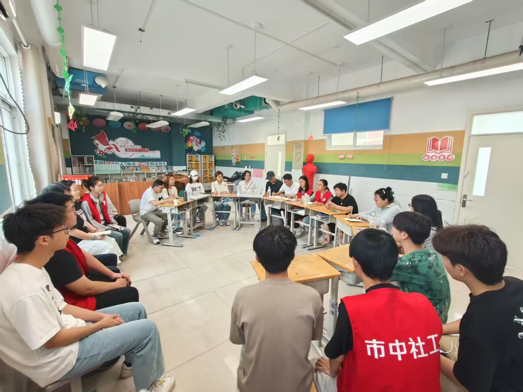 活动结束后,心家园的彭军主任主持了驻党东小学济南大学2022级社工专业同学实习中期汇报会议,心家园的专业社工、济南大学社会学系的老师们共同对活动进行了总结,实习生们也发表了自己的感受。