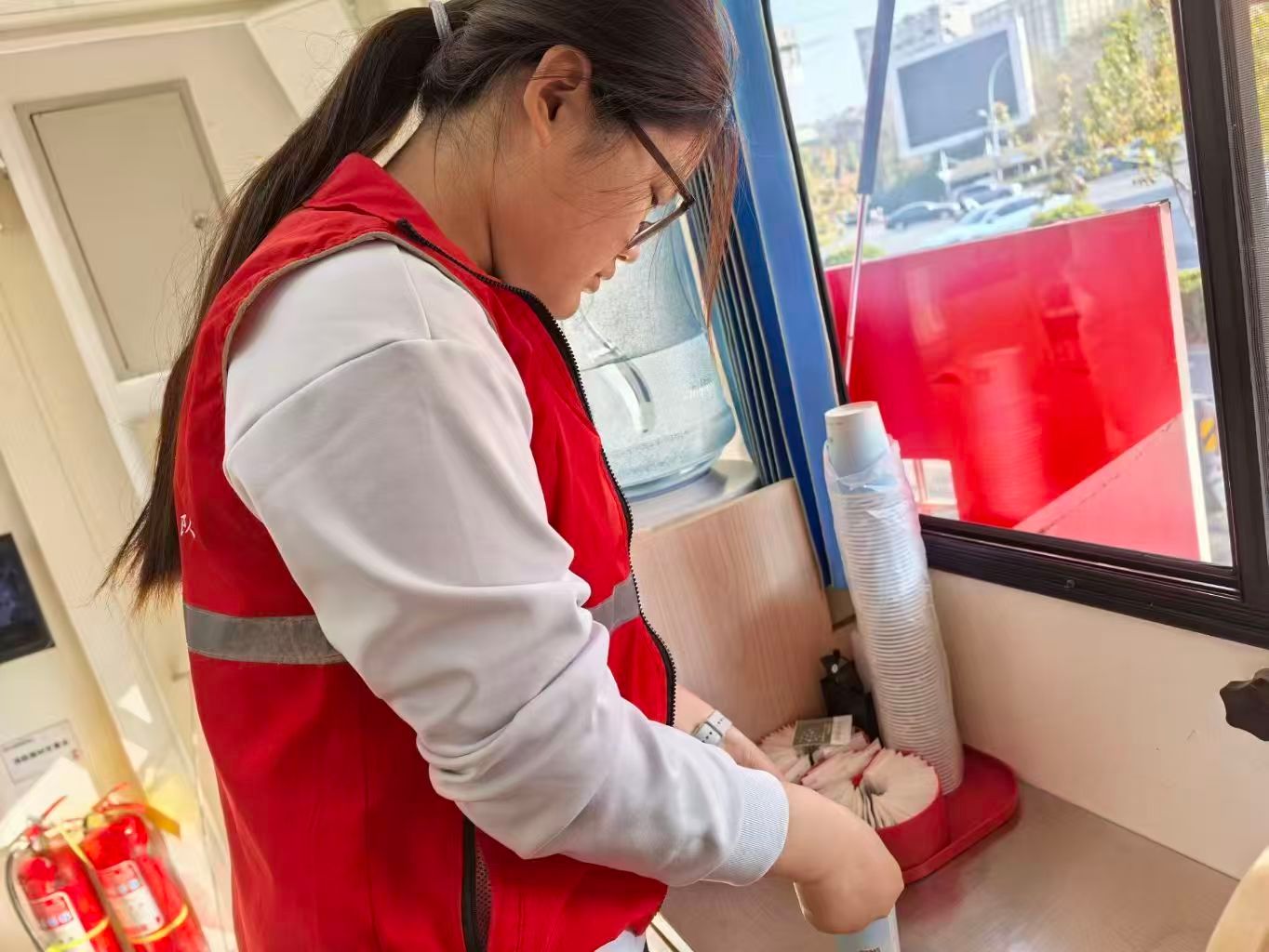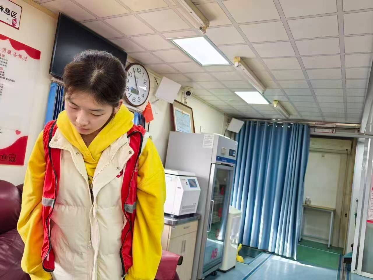 活动现场,志愿者团队分工有序、履职尽责,以专业高效的服务为无偿献血工作保驾护航。献血车内,志愿者主动靠前服务,全程做好献血者全流程保障,既高效协助完成信息登记、资格核验等基础环节,又贴心关注献血者身心状态,及时递上温糖水补充能量、送上暖心叮嘱以缓解紧张情绪;献血结束后,细致告知注意事项,耐心讲解物资发放及奖品申领流程,用周到举措让每一位献血者感受到关怀与安心,切实提升服务体验与活动实效。献血车旁,志愿者手持宣传册主动上前,向过往市民普及献血知识与相关政策,针对不同人群疑问耐心答疑解惑,纠正认知误区,传递“定期献血无损健康、可促进新陈代谢,更是挽救生命善行”的科学理念,引导更多人参与到无偿献血事业中。