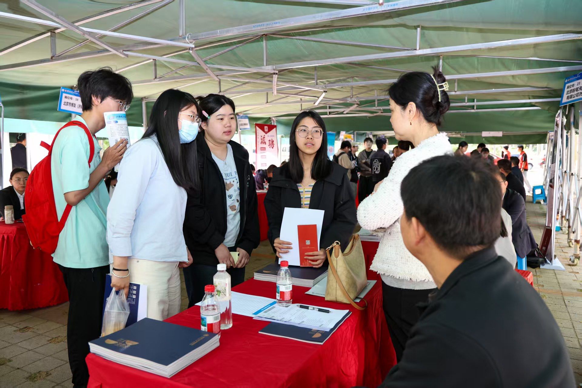 招聘现场,张庆国、陈其军等与参会单位深入交流,详细了解用人单位岗位需求、发展趋势、供需状况、发展前景等情况。同时与毕业生面对面交流,了解学生的就业意向与就业过程中遇到的难题,鼓励学生充分做好就业准备,发挥专业优势,实现高质量就业。