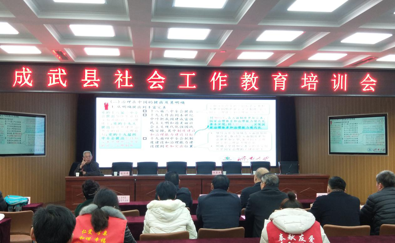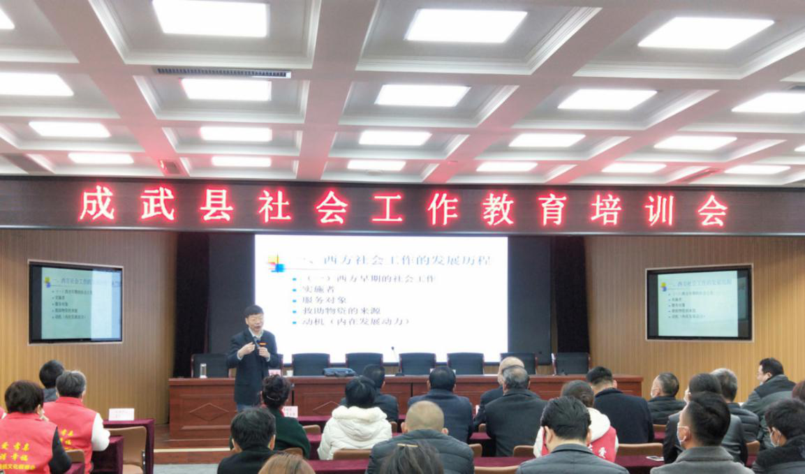 为深入贯彻落实省民政厅在全省范围内实施社会工作教育培训对口扶贫项目的部署要求,提升对口县社会工作者应对服务难题的专业能力,2020年11月23日,济南大学政法学院与成武县民政局在县社会福利中心联合举办社会工作教育培训会。参会人员为县民政局全体同志、各社会组织法人(负责人、财务人员、一线工作者)、社工及志愿者、城乡儿童督导和儿童主任、城乡社区工作者,总计100余人。