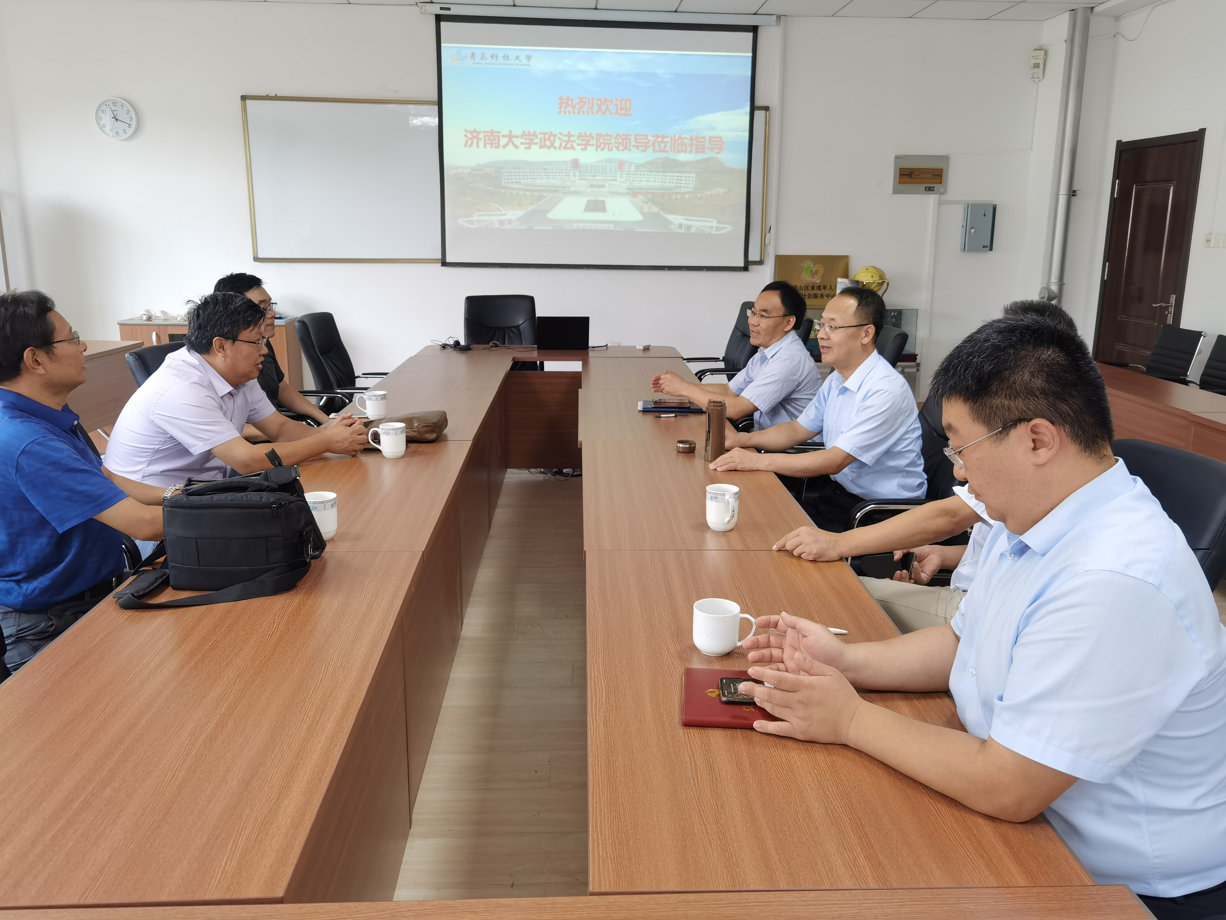 9月17日,学院党委书记徐庆国一行赴青岛参加2021全国智慧法院建设应用高峰论坛,访问青岛科技大学法学院,法学系张德军教授、朱海波老师陪同参会调研。