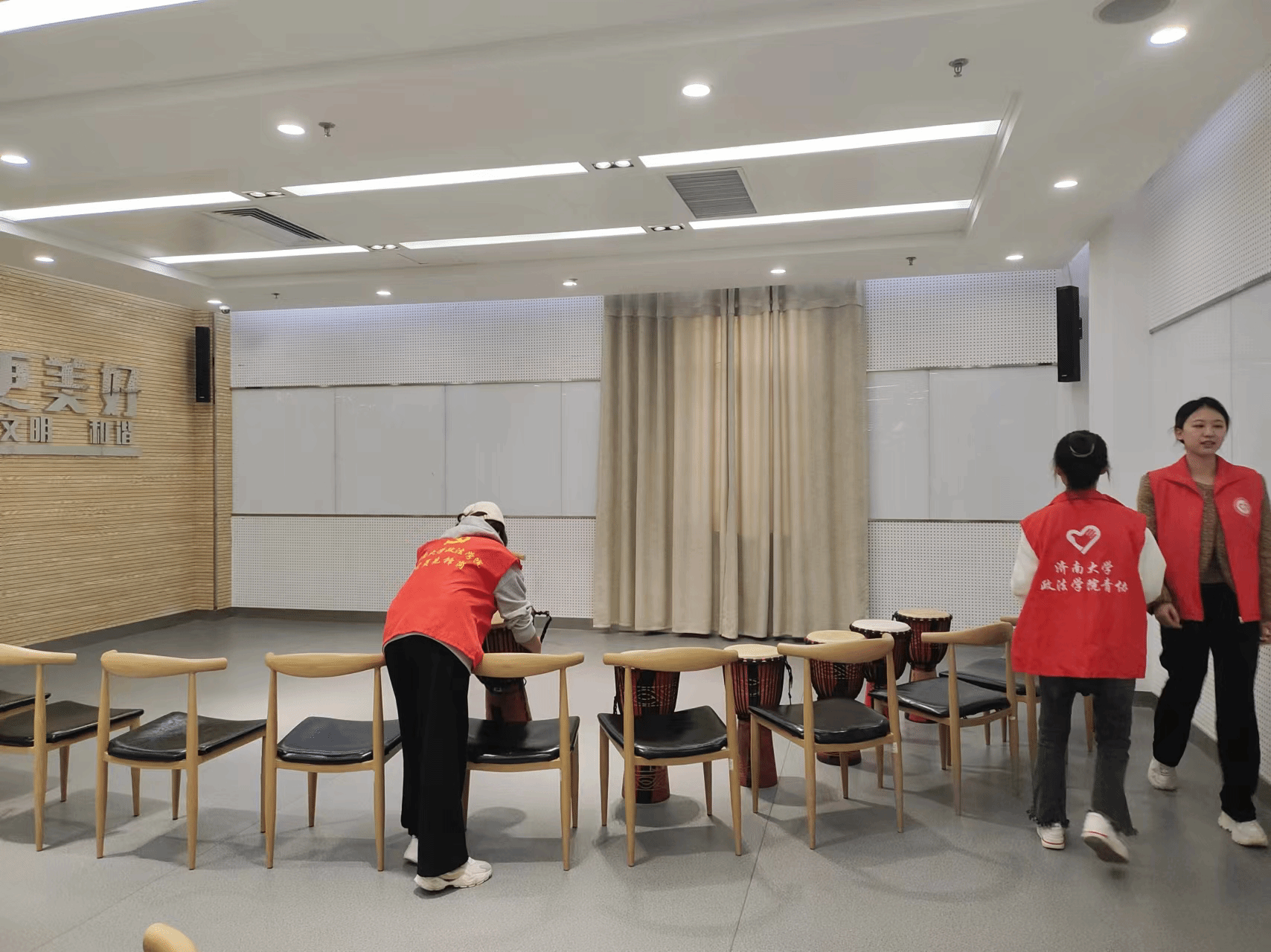 为进一步了解心理障碍者这一群体,走进他们的内心世界,给予他们更多的关怀与帮助,2023年10月14日,济南大学政法学院阳光先锋青年志愿者协会的3名志愿者来到济南市历下区慧爱残疾人服务中心开展志愿活动。10月14日上午,志愿者到达服务中心后,与工作人员进行活动对接。根据活动安排,志愿者需一同布置非洲鼓教学课堂的场地,进行到课人员的签到,并为到课的孩子们分发制服。准备工作完成后,志愿者与孩子们肩并肩坐在一起,学习打击非洲鼓。孩子们通过老师下发的指令与志愿者进行课堂互动,跟随音乐打出节拍,每个孩子的脸上都洋溢着笑容,这充分拉近了志愿者与孩子们的距离。活动结束后,志愿者与孩子们亲切告别,并对课堂进行总结。心理障碍者需要特殊的关爱与照顾,通过志愿活动帮助心理障碍者适应社会环境,能够促进心理障碍者的发展,也是对奉献、友爱、互助、进步的志愿者精神的积极践行。通过此次活动,志愿者对心理障碍者这一群体有了更深入的了解,也对志愿活动的意义有了进一步的认知。慧爱基地秉持“来到慧爱,将爱传递”的理念,用心感受心理障碍者的内心世界,为他们带去世界的善意与温暖,为构建和谐社会贡献力量!