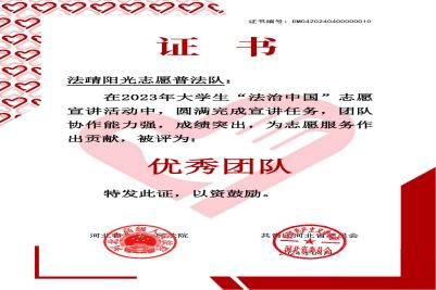 近日,“法治中国”志愿宣讲优秀团队评选结果发布,济南大学政法学院阳光先锋青年志愿者协会在“法治中国”志愿活动宣讲中,传播法律知识,了解国情民生,践行使命担当,圆满完成宣讲任务,成绩突出,在多个团队中脱颖而出,成功入选法治中国志愿宣讲优秀团队。