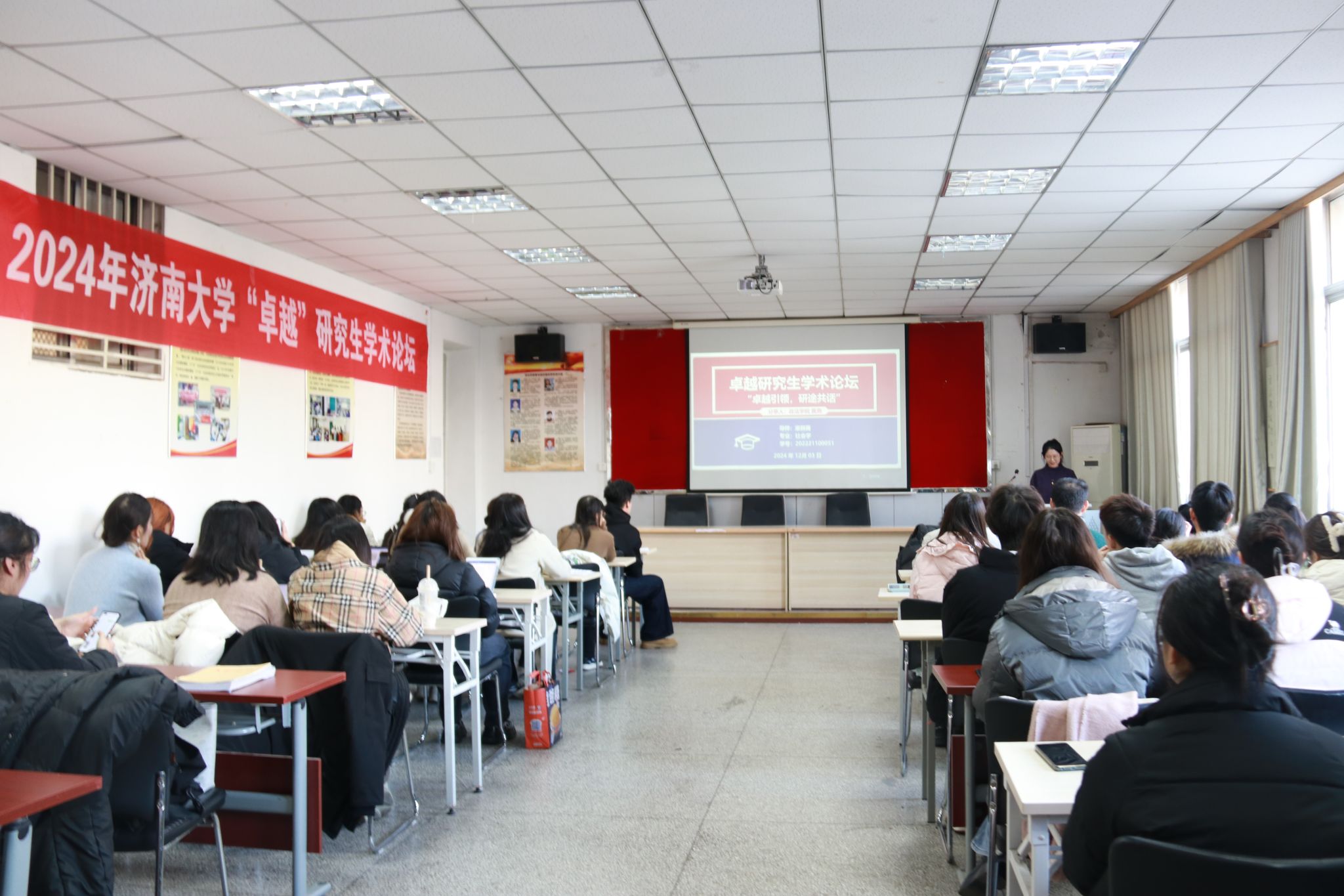 为切实强化研究生科研创新能力,扎实推进研究生学风建设,营造浓郁学术氛围,由济南大学党委研究生工作部、校团委与创新创业学院携手合作,共同发起并主办了2024年“卓越”研究生学术论坛。12月3日,由政法学院承办的“卓越引领,研途共话——政法学院研究生学术经验分享会”在政法学院三教210教室顺利开讲。