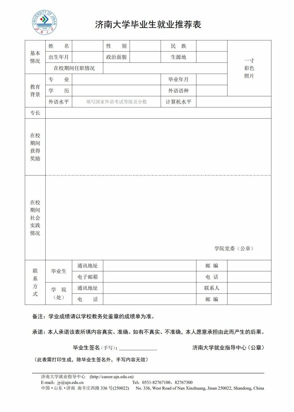 济南大学毕业生就业推荐表填写指南